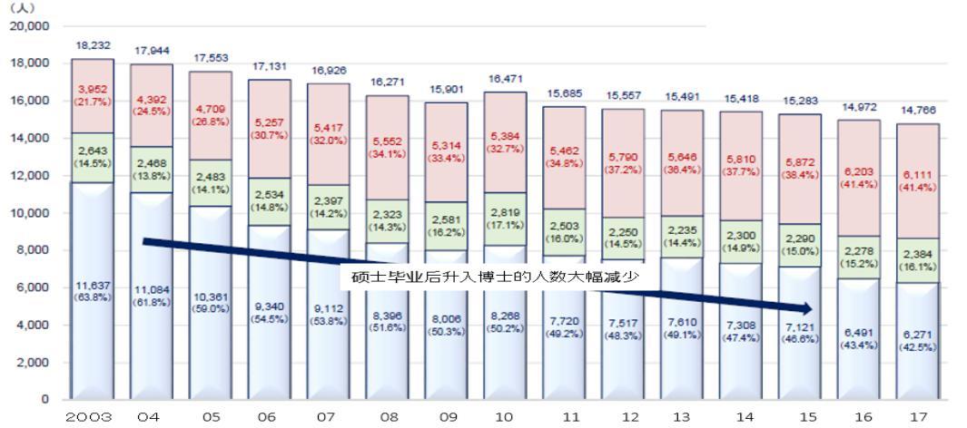 圖2 日本博士研究生教育發展狀況(2003—2017)