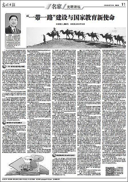 中國高等教育學(xué)會(huì)會(huì)長瞿振元在《光明日報(bào)》撰文:“一帶一路”建設(shè)與國家教育新使命