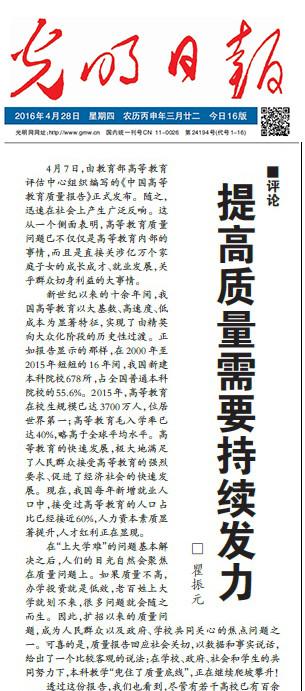 瞿振元在《光明日報》撰文:提高質量需要持續發力